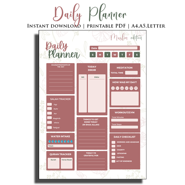 Introducing the Islamic Daily Planner, a thoughtfully designed digital product crafted to enhance the daily lives of Muslims seeking organization, spiritual growth, and balance in their routines. This dynamic planner seamlessly integrates modern technology with timeless Islamic principles, creating a comprehensive tool to help you navigate your day with purpose.